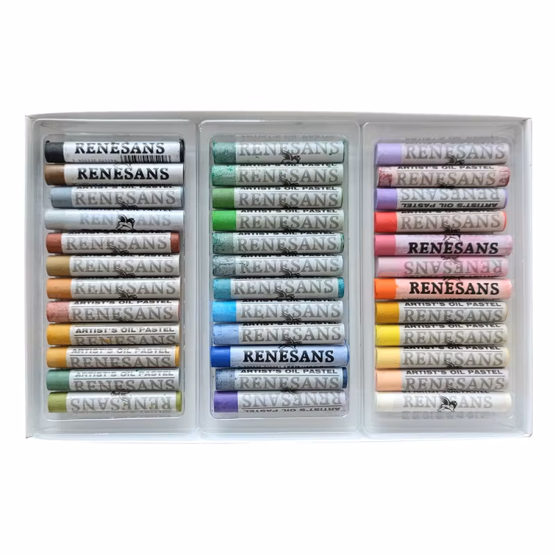 Renesans set med 36 oljepastellerRenesans oljepasteller är gjorda av olja. De är mjuka och lätta att använda, individuella färger är lätta att blanda och kombin
