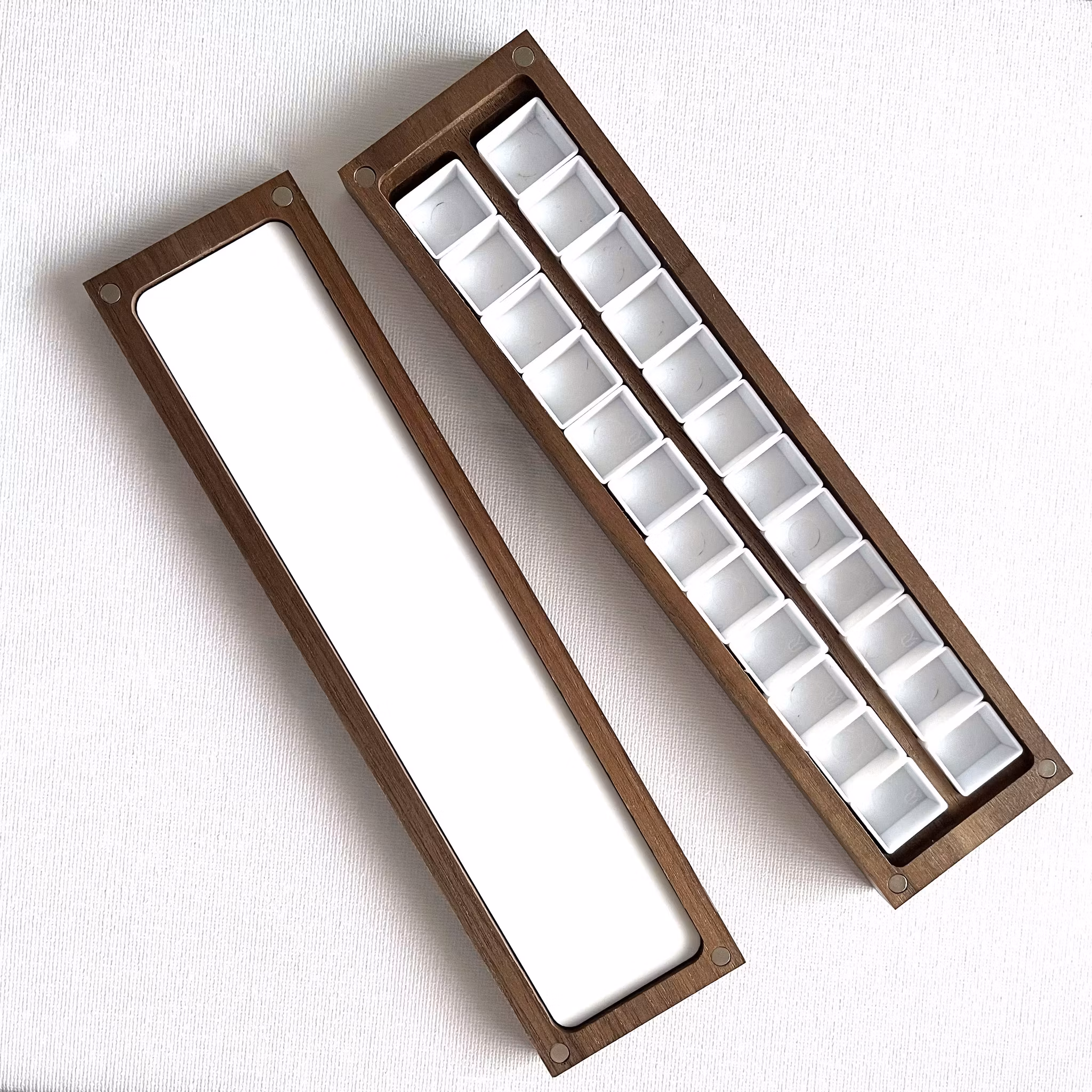 En mycket fin akvarellåda i behandlad Valnöt - med magnet -